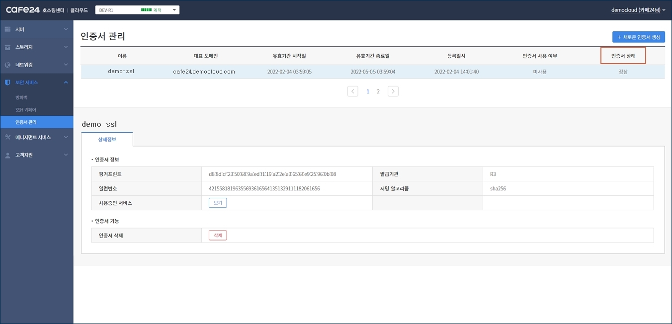 카페24 클라우드의 인증서 관리 서비스는 정식 CA의 승인을 받은 인증서만 지원합니다.