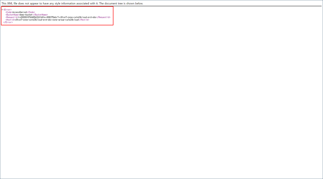 AccessDenied Error가 발생하며, 정상적인 페이지를 볼 수 없습니다.
