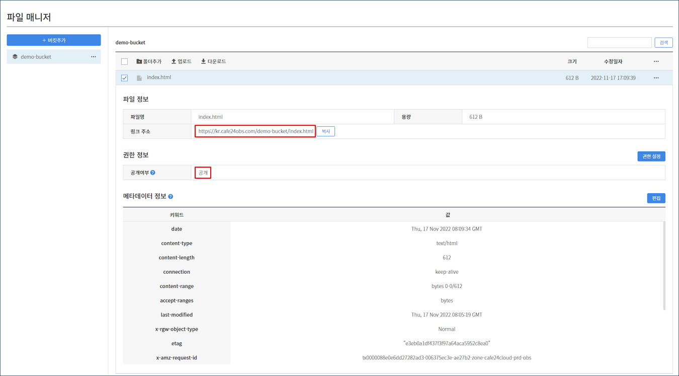 콘솔 > 스토리지 > 오브젝트 스토리지